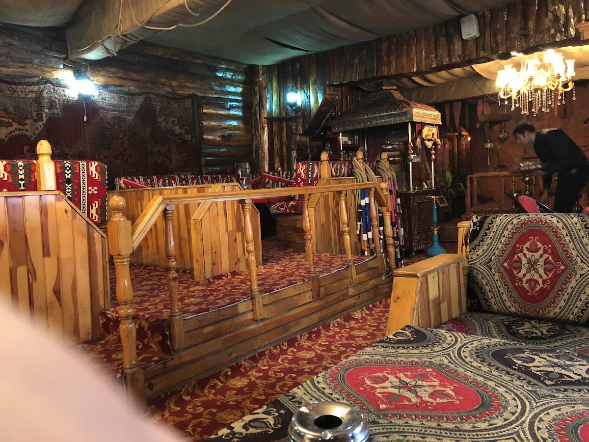 As you walk through the doors, you are greeted with an inviting ambiance that beautifully blends Russian architectural elements with classic Ottoman furniture. The walls are adorned with mesmerizing paintings that tell stories of the region’s rich history, creating a backdrop that sets the stage for casual gatherings or a quiet moment of reflection.